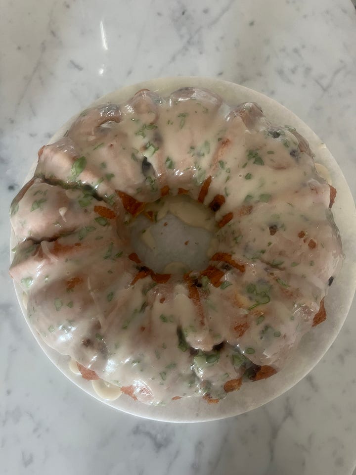 This is one of my favorite variations of my basic pound cake. I love using herbs in desserts, particularly with summer fruits like blueberries and peaches.