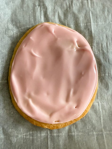 2)For this design, decorate each cookie completely before moving on to the next. If the icing starts to dry the design won’t work.