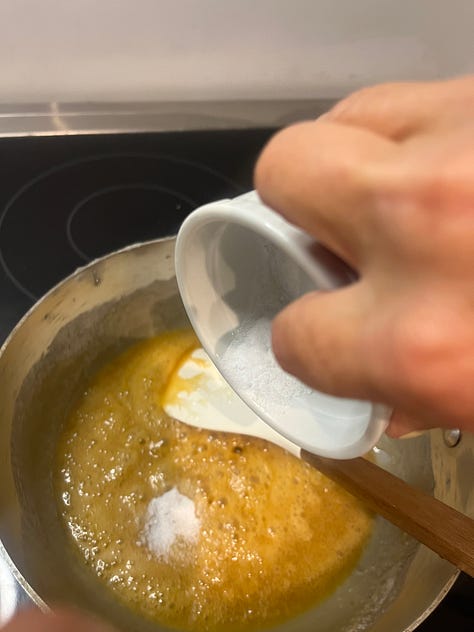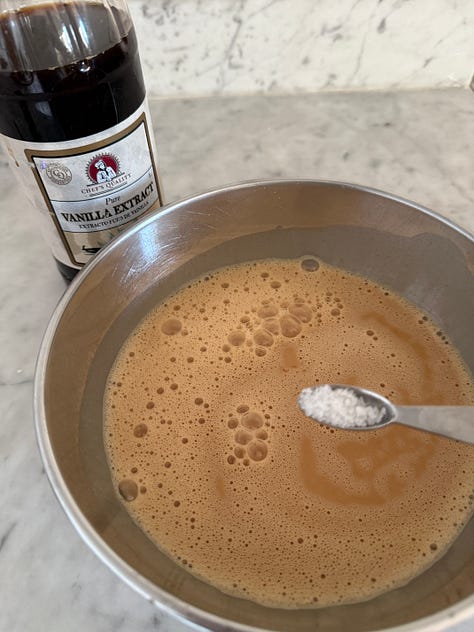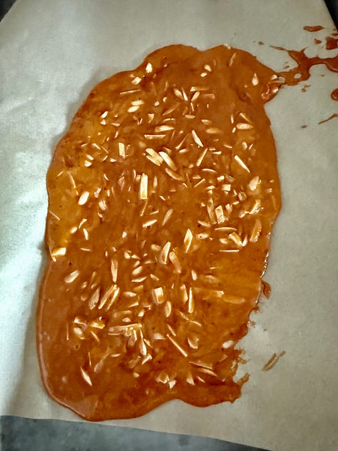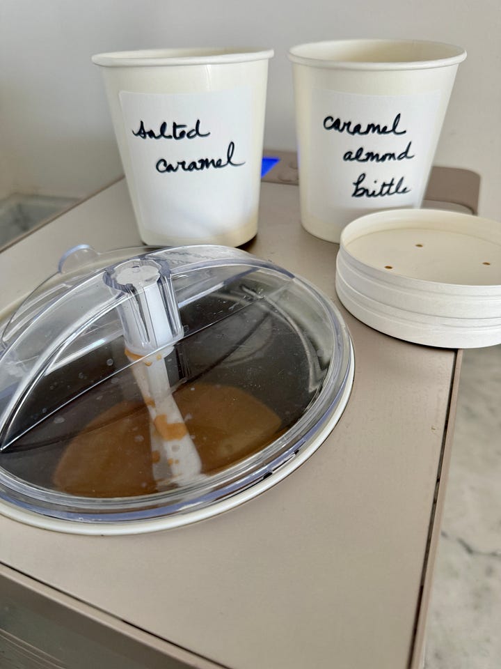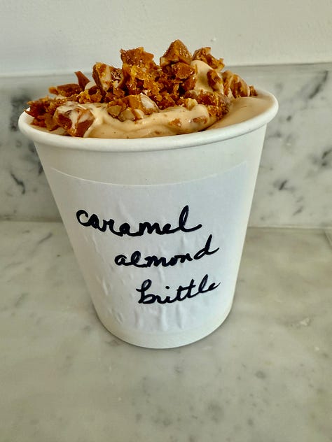 Salted caramel is hands down my favorite ice cream flavor. It’s perfect alone and improves almost every cake, pie, and dessert it’s paired with. Putting chunks of homemade almond brittle takes it over the top. It’s also good with chopped meringue pieces, a variation I had in Rome.