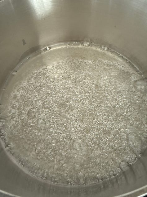 In a medium sized pot over medium heat, bring the sugar, water, and butter to a boil. Cook, stirring occasionally until the mixture begins to brown. Begin stirring constantly so that it browns evenly . When it reaches a caramel color , remove from the heat and stir in the baking soda and salt. The mixture will bubble up. Immediately stir in the nuts and pour onto a parchment lined tray. Using a spatula, spread as thinly as possible. Cool. As soon as it is completely cool, break into pieces and keep in a sealed container.